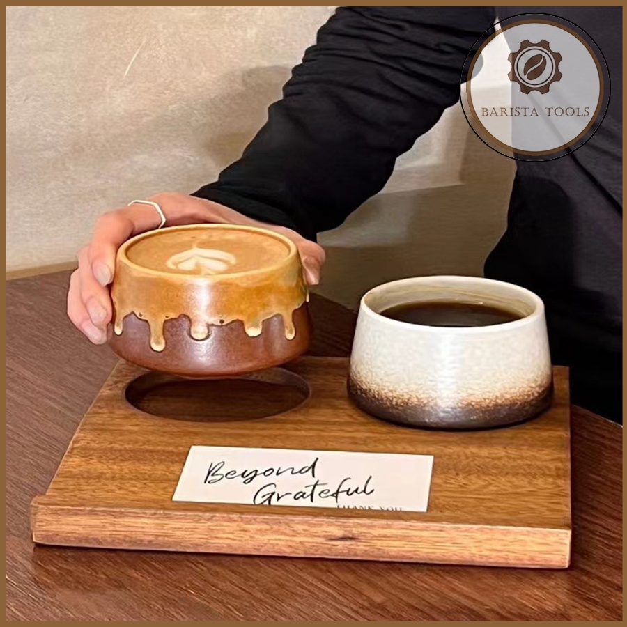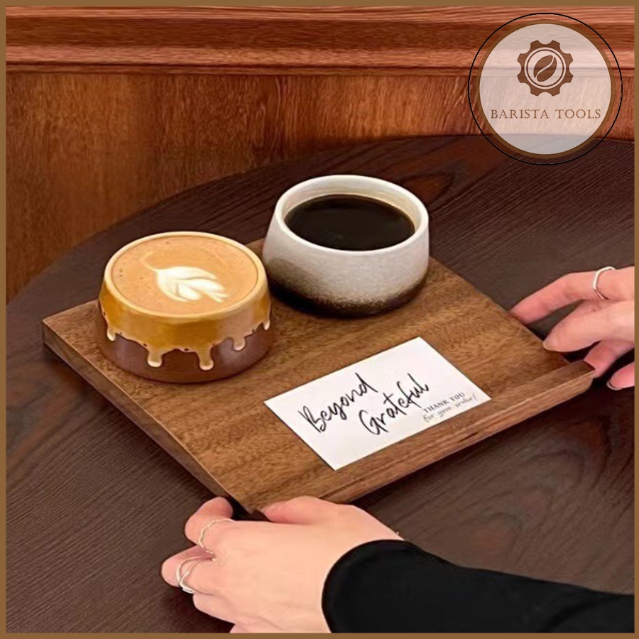 Khay gỗ 2 ô đặt ly cốc phục vụ đồ uống (kèm thanh gờ đặt ghi chú đồ uống)